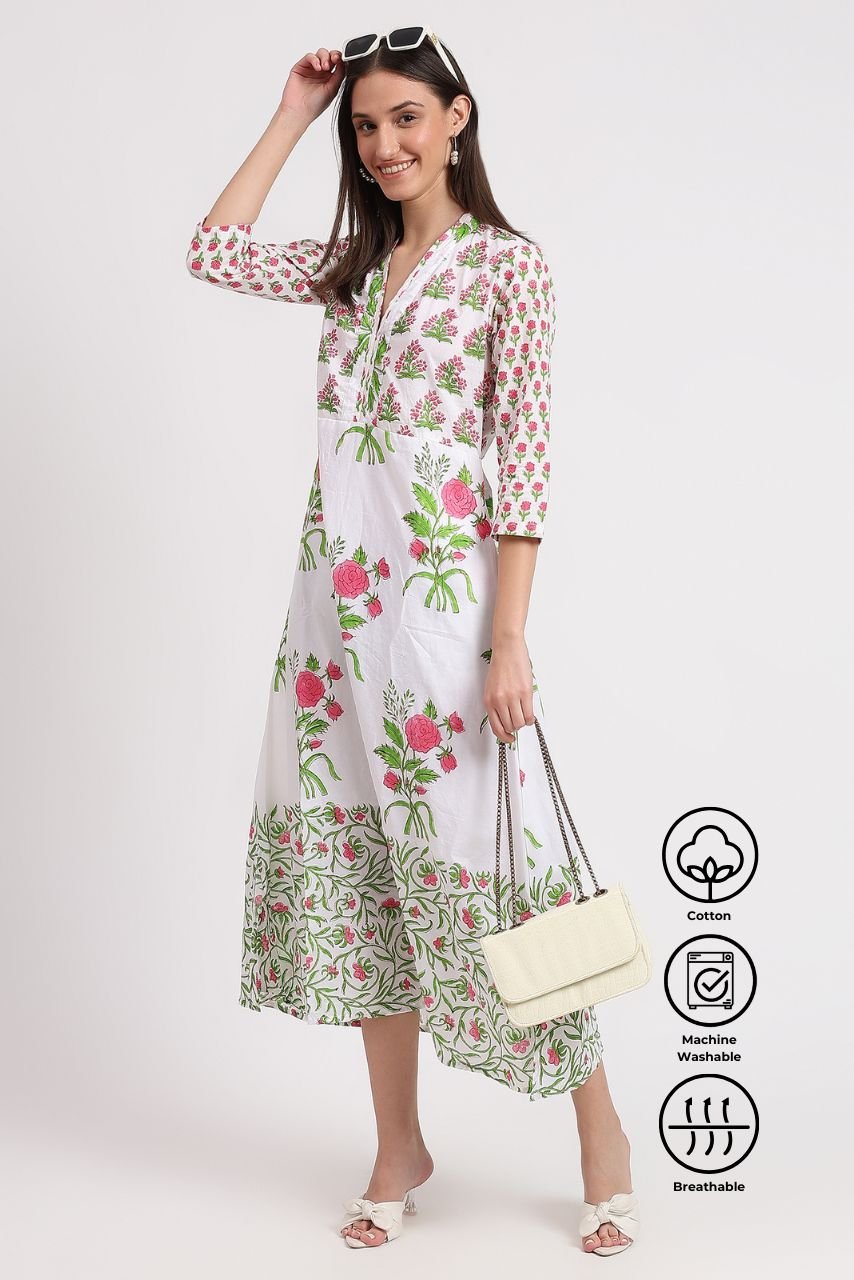 Hand Block Printed: Skilled artisans meticulously stamp intricate designs using carved wooden blocks dipped in dye.