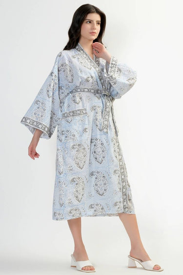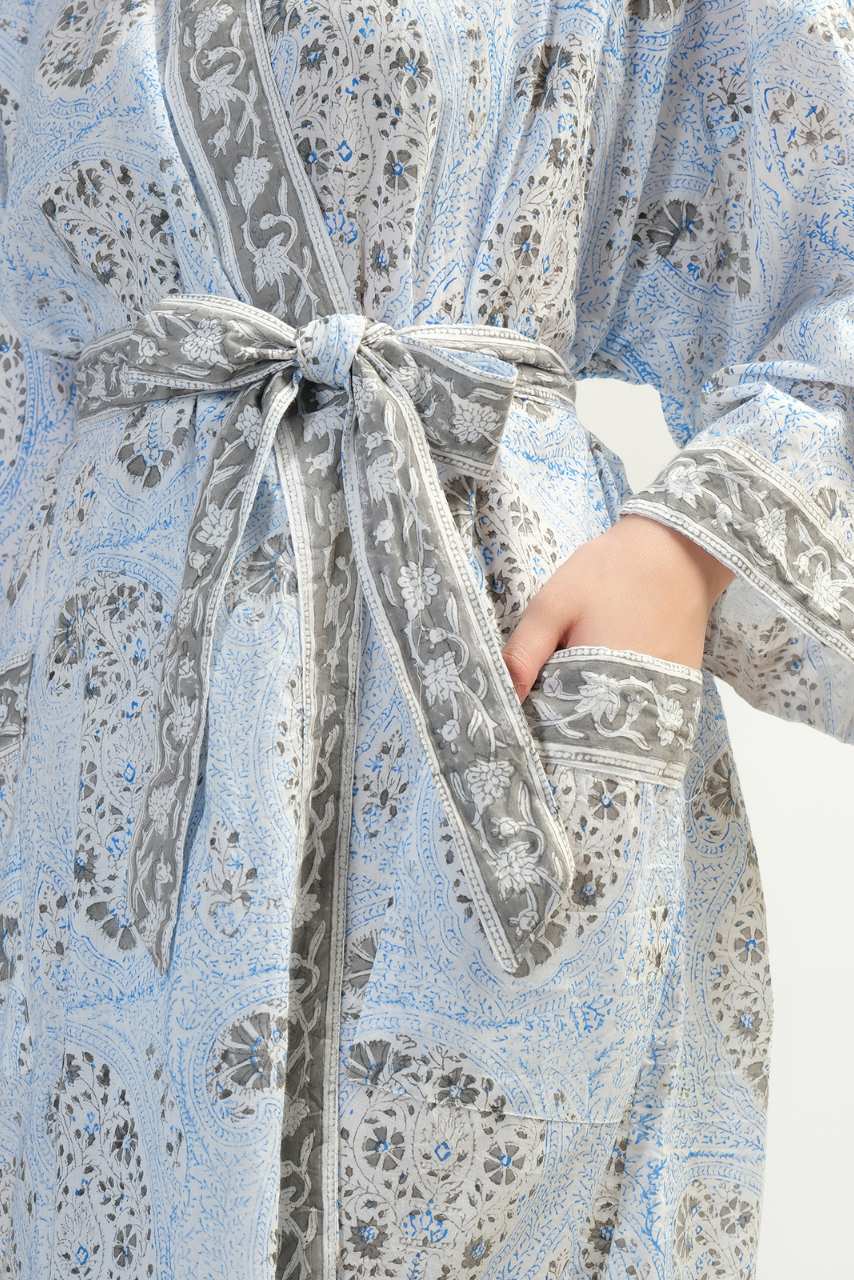 Cotton Kimono Robe - Light Blue