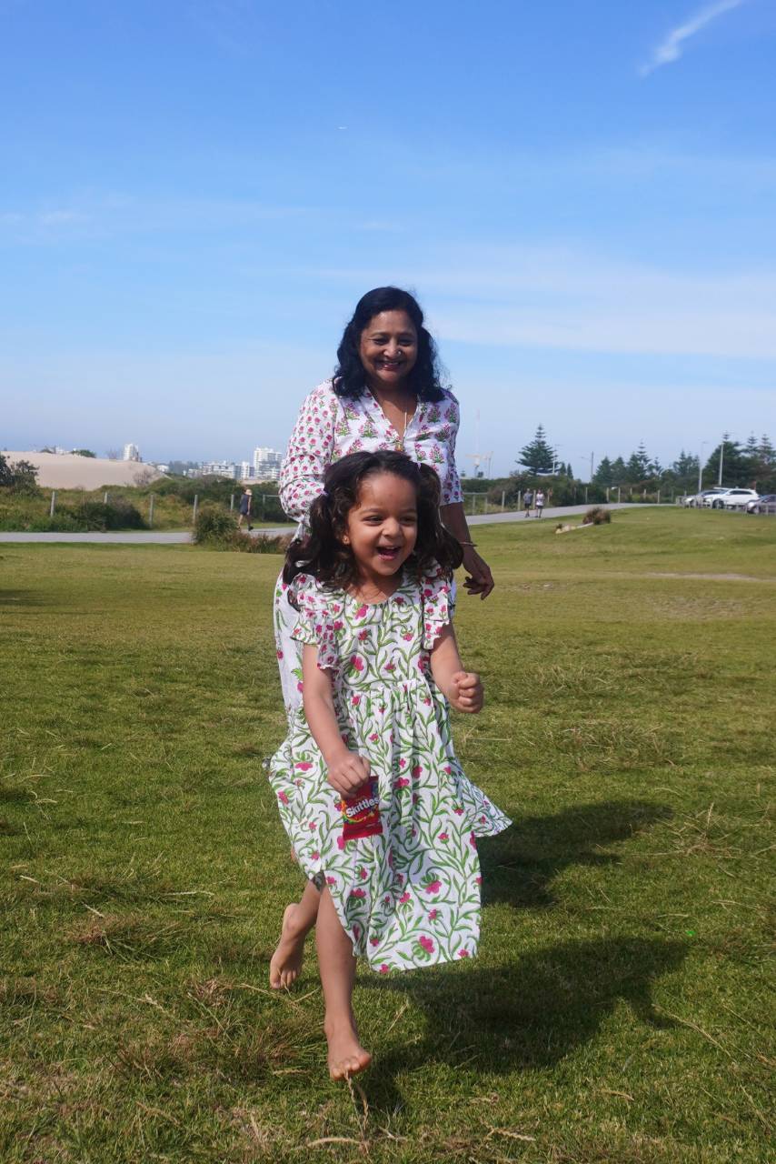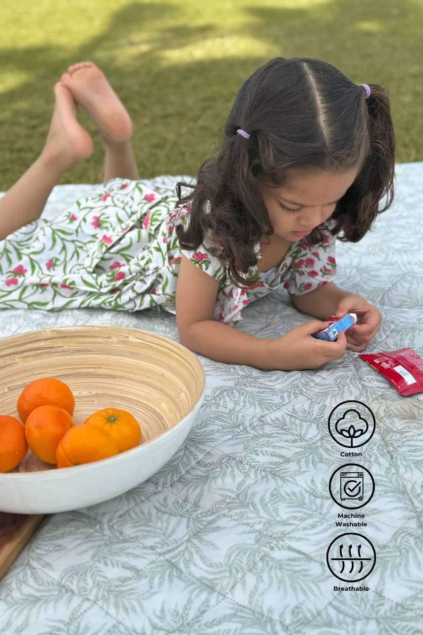 - Playful Petal: Hand-block-printed design embodying the flourishing nature of your little ones with playful details, capturing their imaginative energy with a flare.