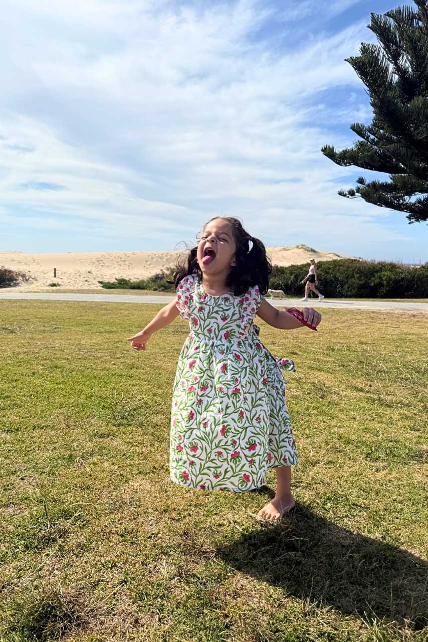 - Premium Indian Cotton: Made from soft, breathable cotton, this dress ensures comfort all day long, perfect for playdates or outdoor fun.