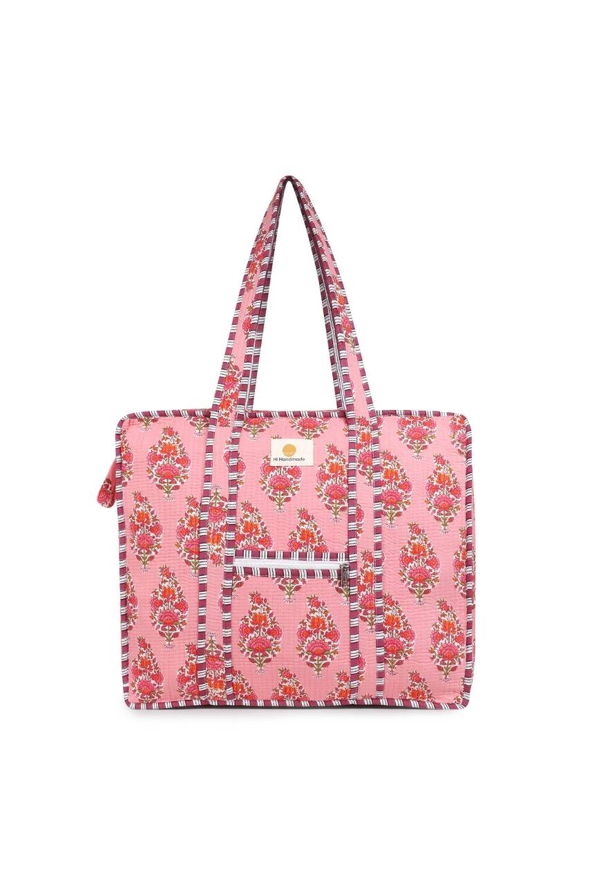 Cotton Tote Bag With Zip - Parisian Pink