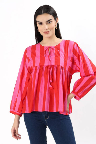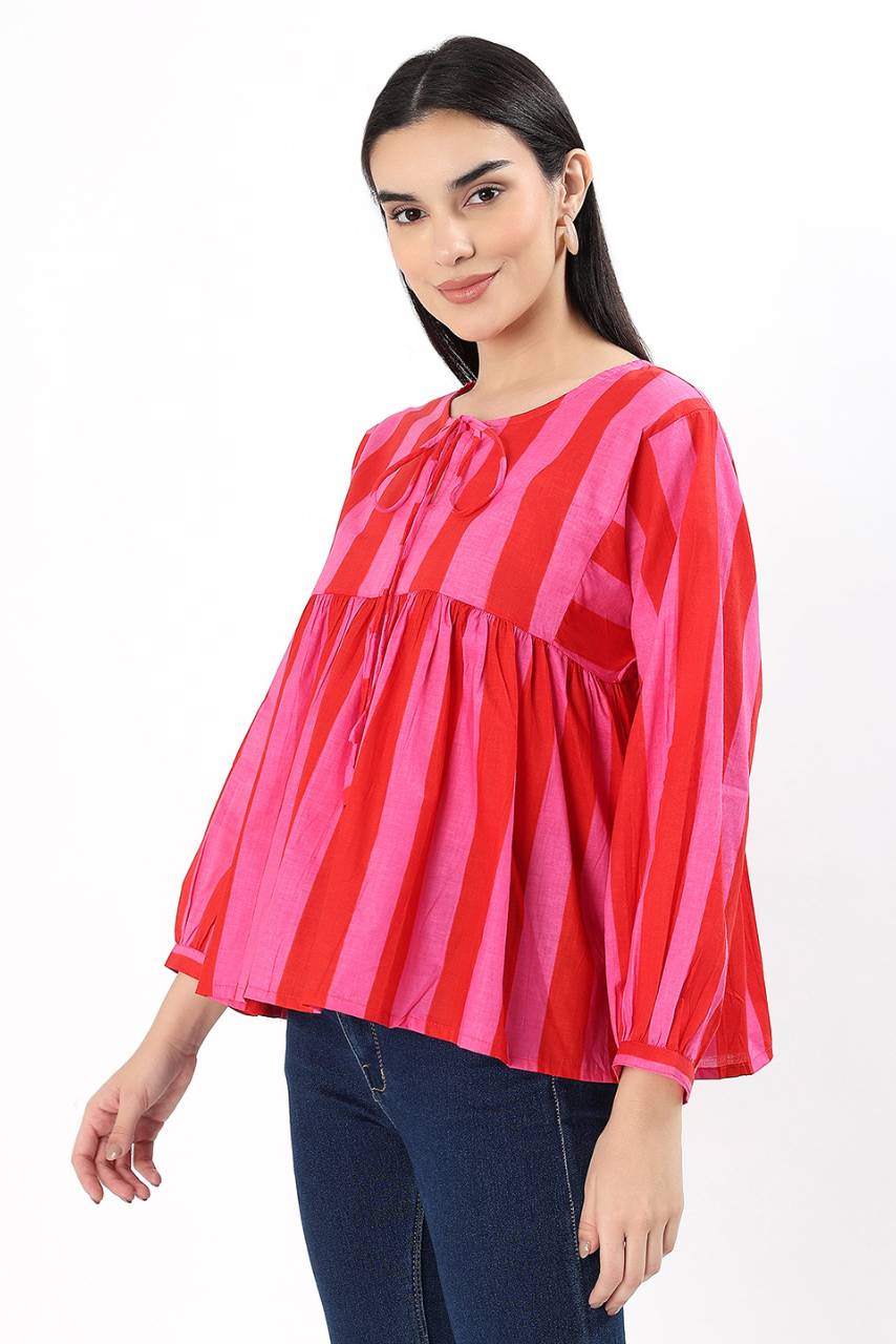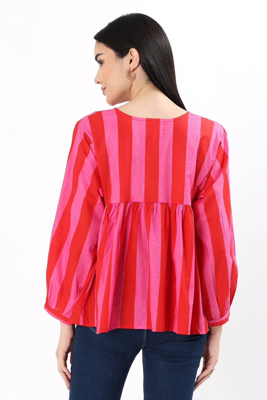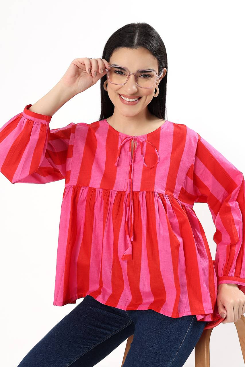 - Pretty Placed Prints: Featuring slimming ribbon stripes. Giving different depths that create a simple shirt more elevated then your average cotton top.