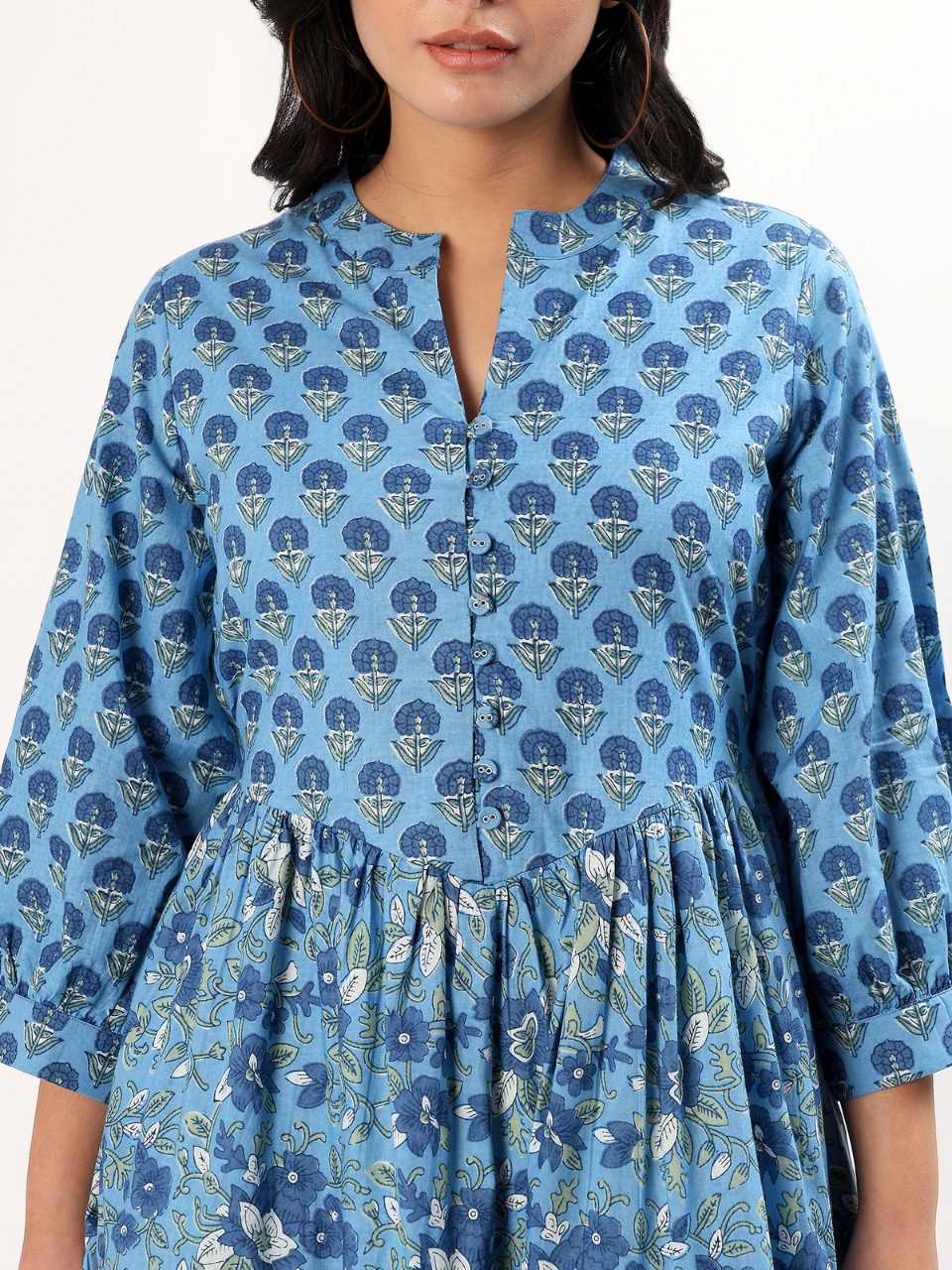 Bestseller in blue. Sahiba style is 2x sold out, with functional buttons, a flattering v-bust cut & full lining