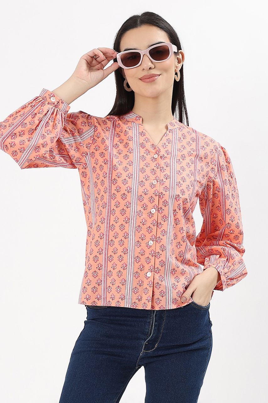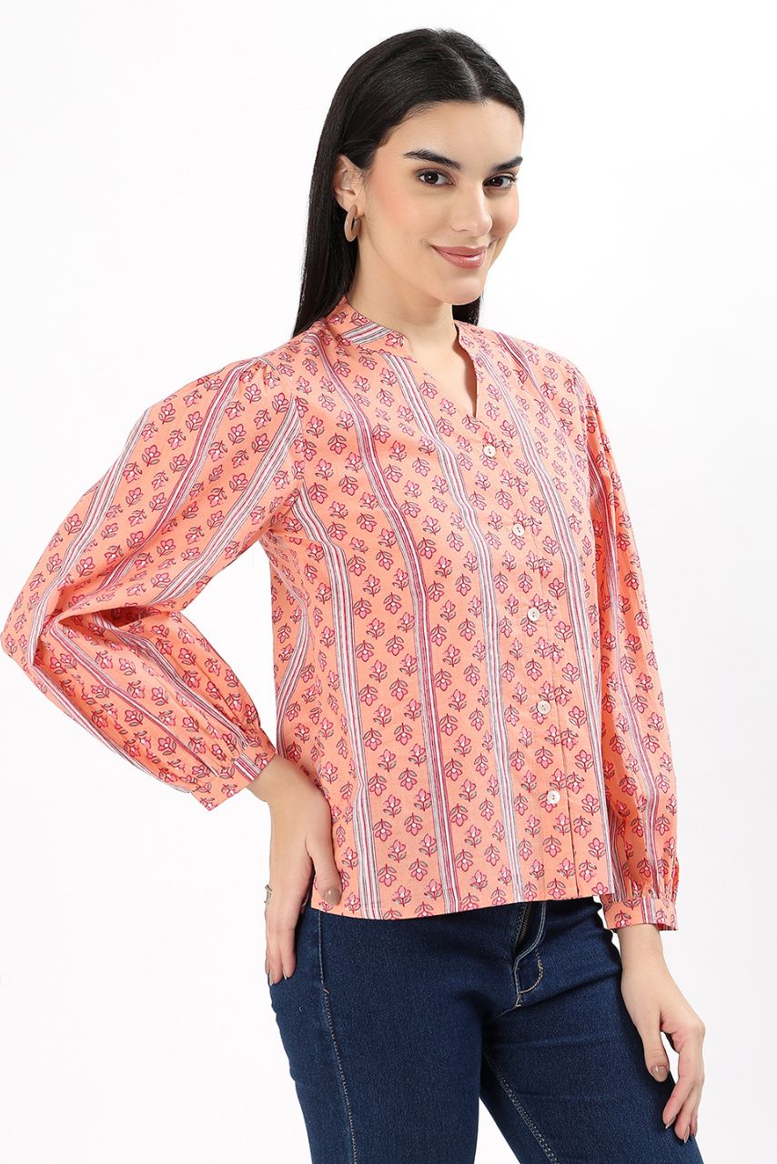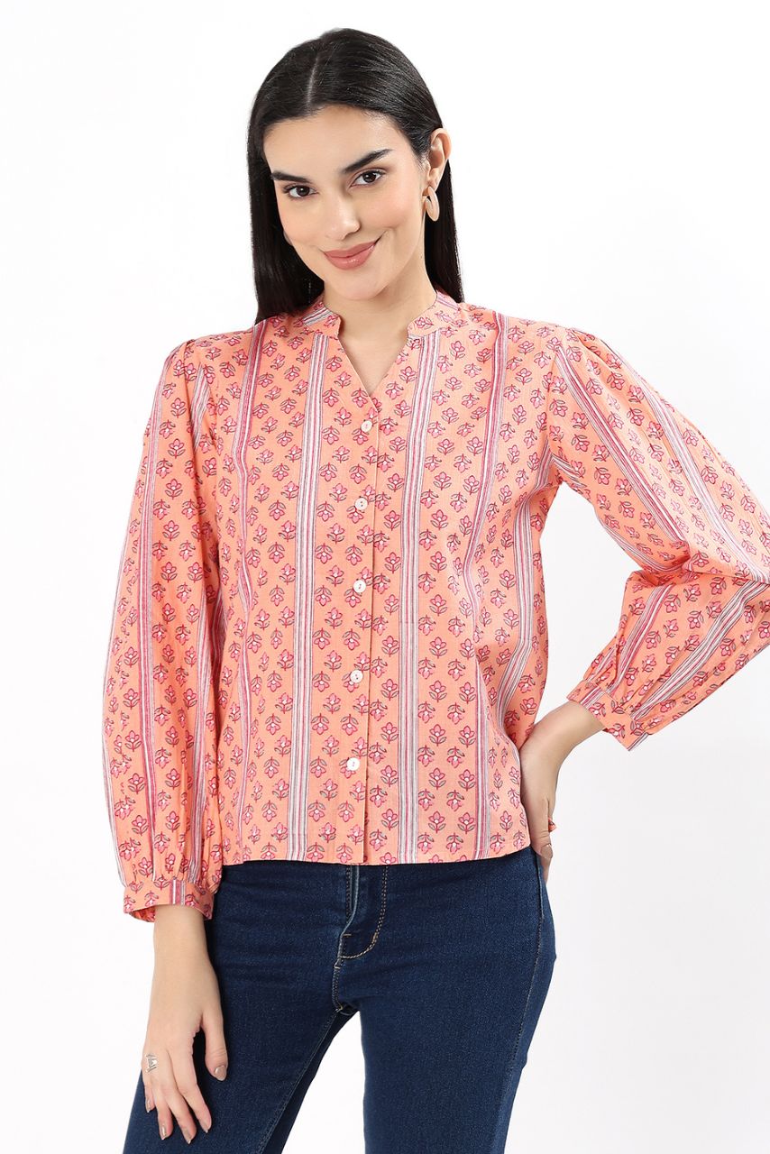 - Pretty Placed Prints: Featuring slimming stripes with pretty petal florals. Giving different depths that create a simple shirt more elevated then your average patterned top.